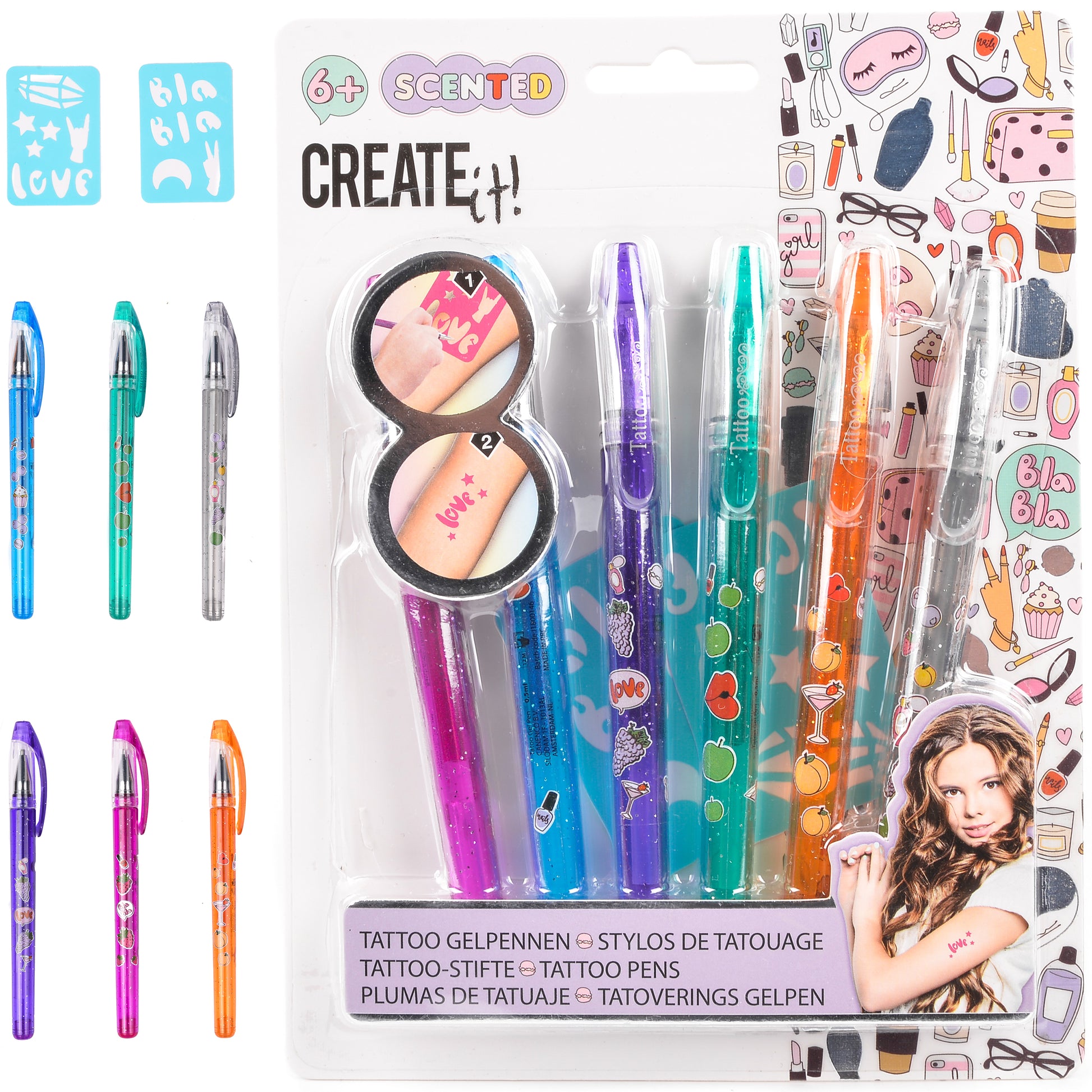 Create It! Tattoo Geurpen 6x + 2 Sjablonen Display - 84200